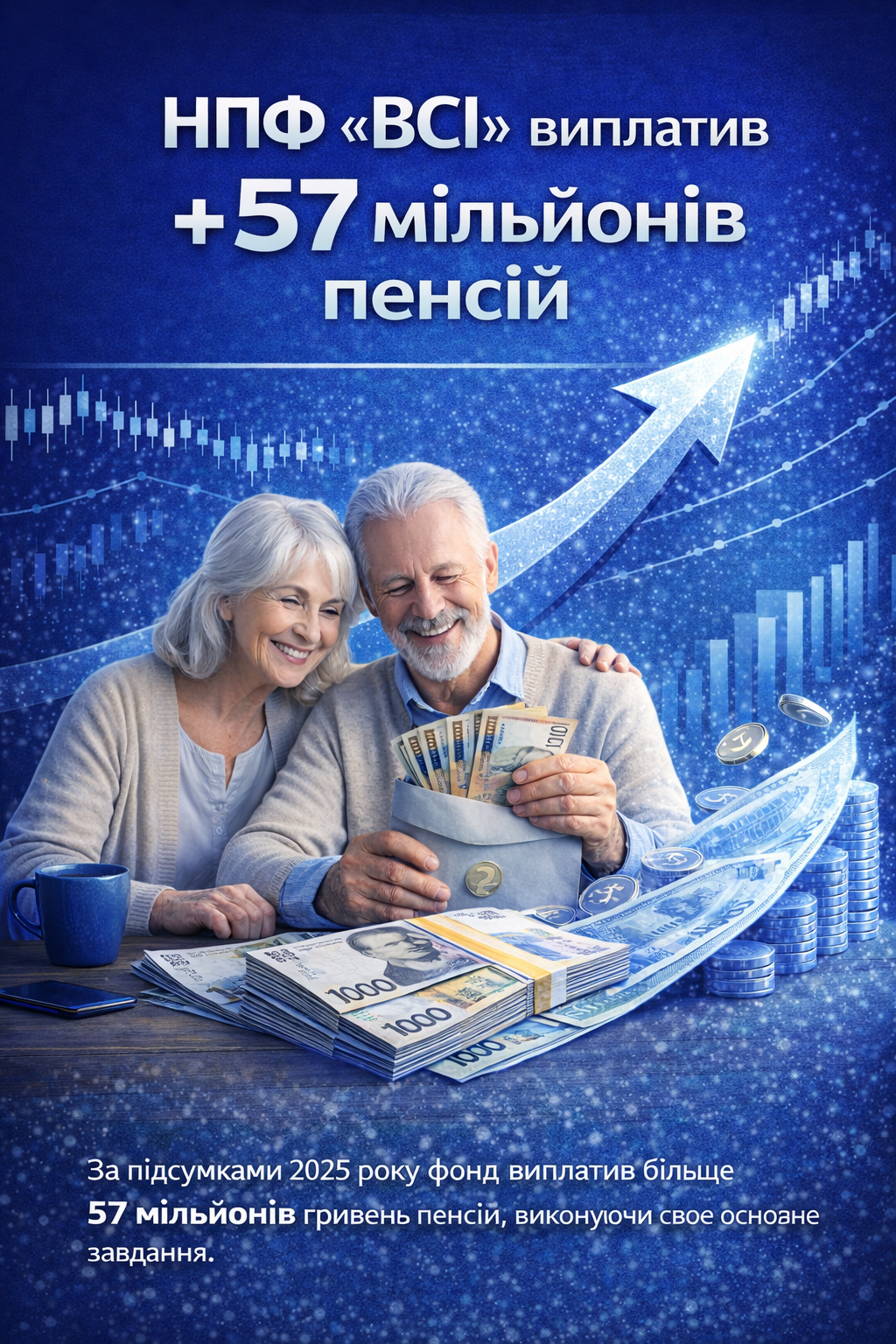 НПФ «ВСІ» виконує своє основне завдання – виплачує пенсії, і за підсумками 2025 виплатив більше 57 мільйонів гривень пенсій.